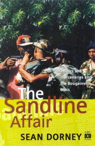 Sandline referred to the British mercenary corporation, Sandline International. Prime Minister Julius Chan, the Australian-educated son of a Chinese trader and a native from PNG’s New Ireland province, had lost control of the military and the Bougainville region. His solution: bypass the army by hiring mercenaries. Violent protests and a military coup followed.
